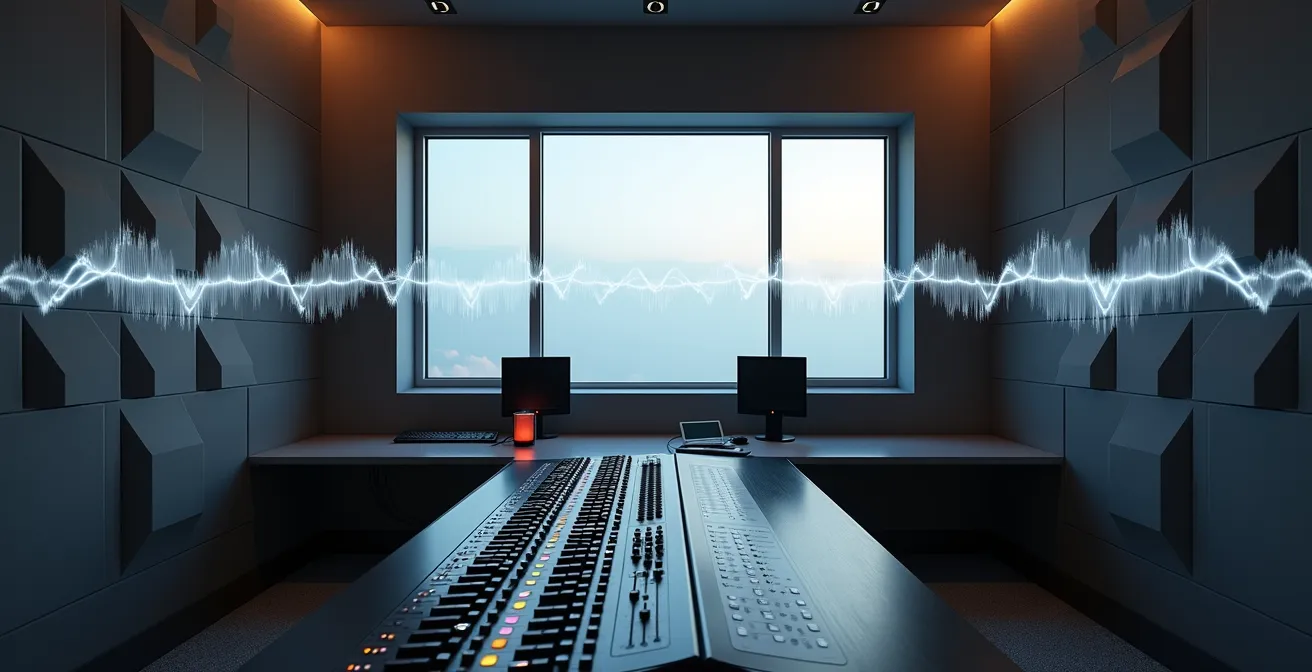 Ein Mix ist mehr als eine Ansammlung von Spuren; er ist eine Klang-Architektur. Um eine überzeugende 3D-Wirkung zu erzielen, müssen Sie jedem Element einen festen Platz zuweisen – nicht nur von links nach rechts (Panorama), sondern auch in der Höhe (Frequenzen) und Tiefe (Distanz). Stellen Sie sich eine virtuelle Bühne vor. Der Sänger steht vorne in der Mitte, das Schlagzeug dahinter, die Gitarren an den Seiten und die Streicher-Pads füllen den Hintergrund. Genau dieses mentale Bild müssen wir mit akustischen Werkzeugen nachbilden.