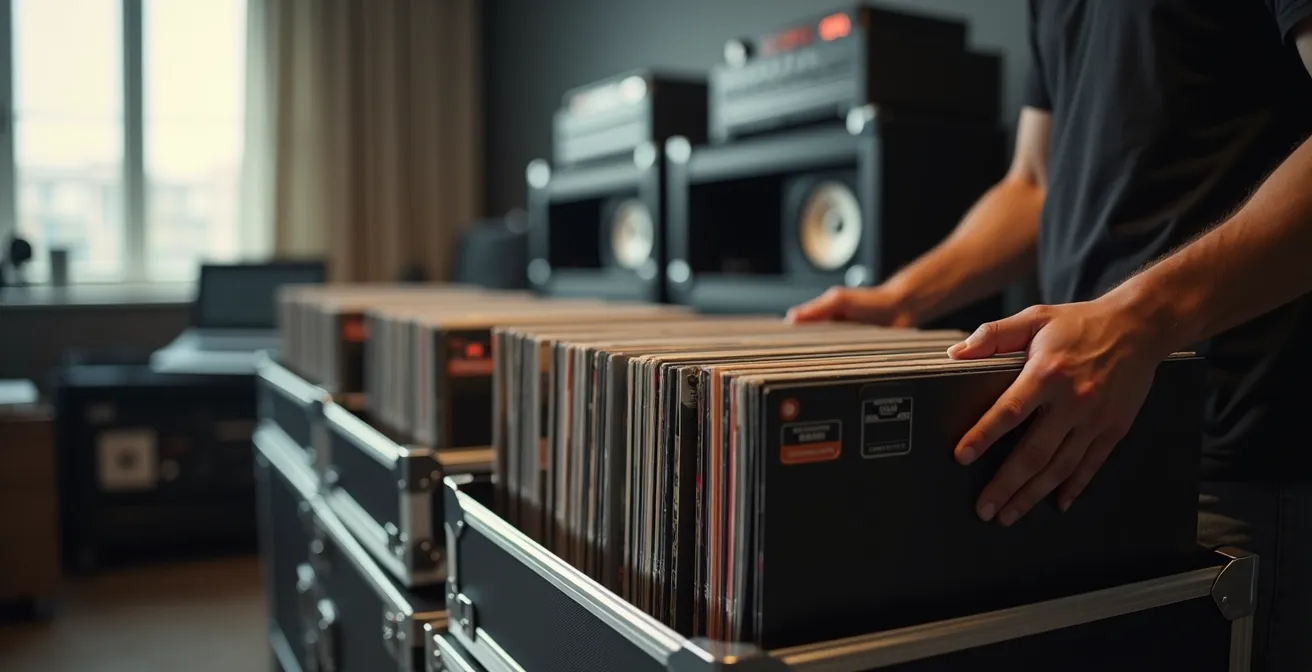 Dieser Leitfaden geht daher über eine reine Produktempfehlung hinaus. Er behandelt den Vinyl-Transport als das, was er ist: eine Kunstform. Wir werden die brutale ökonomische Realität beleuchten, die hinter einem Vinyl-Set steckt, und Ihnen zeigen, wie Sie mit physikalischer Empathie die Kontrolle über Ihr Setup behalten. Es geht darum, eine Denkweise zu entwickeln – eine Form der analogen Resilienz, die Sie vor den typischen Katastrophen bewahrt und sicherstellt, dass Ihre einzige Sorge im Club die Musik bleibt.